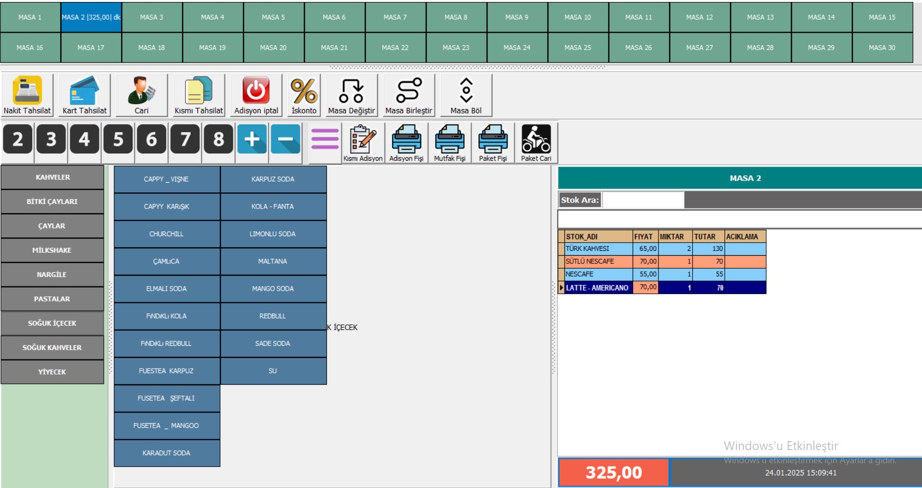 Cafe, bar, lokanta gibi adisyon takibi yapan işletmeler için yazılmış, özelleştirileblir panel yapısı, dokunmatik PC ler ile uyumlu, kullanıcı dostu arayüze sahip bir yazılımdır. Mobil adisyon oluşturup, oluşan adisyonu, mutfağa tek tık ile print edip, hızlı bir çalışma sürecine adım atmış olursunuz ve bu işlem size çok ciddi zaman kazandırır.