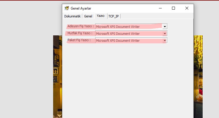 Tek bir termal yazıcıya üç farklı fişi gönderebilirsiniz. Mutfak+Adisyon+Paket